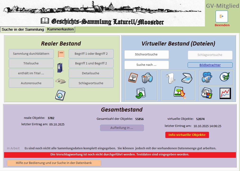 Wir bitten zugleich Sie um Ihre Mitarbeit. Das Herzstück des Vereins ist die Geschichtssammlung Laturell/Mooseder. Sie steht selbstverständlich auch Ihnen zur Recherche zur Verfügung. Der Geschichtsverein möchte diese wertvollen Bestände aber nicht nur pflegen und erhalten, sondern auch kontinuierlich erweitern. Und das geht nicht ohne Sie. Wenn Sie also