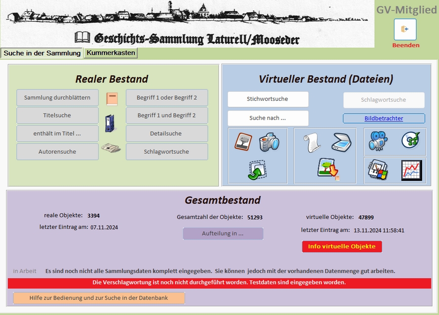Wir bitten zugleich Sie um Ihre Mitarbeit. Das Herzstück des Vereins ist die Geschichtssammlung Laturell/Mooseder. Sie steht selbstverständlich auch Ihnen zur Recherche zur Verfügung. Der Geschichtsverein möchte diese wertvollen Bestände aber nicht nur pflegen und erhalten, sondern auch kontinuierlich erweitern. Und das geht nicht ohne Sie. Wenn Sie also